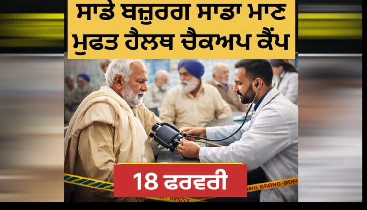 ਸਾਡੇ ਬਜ਼ੁਰਗ ਸਾਡਾ ਮਾਣ” ਤਹਿਤ 18 ਫਰਵਰੀ ਨੂੰ ਮੁਫ਼ਤ ਹੈਲਥ ਚੈਕਅੱਪ ਕੈਂਪ