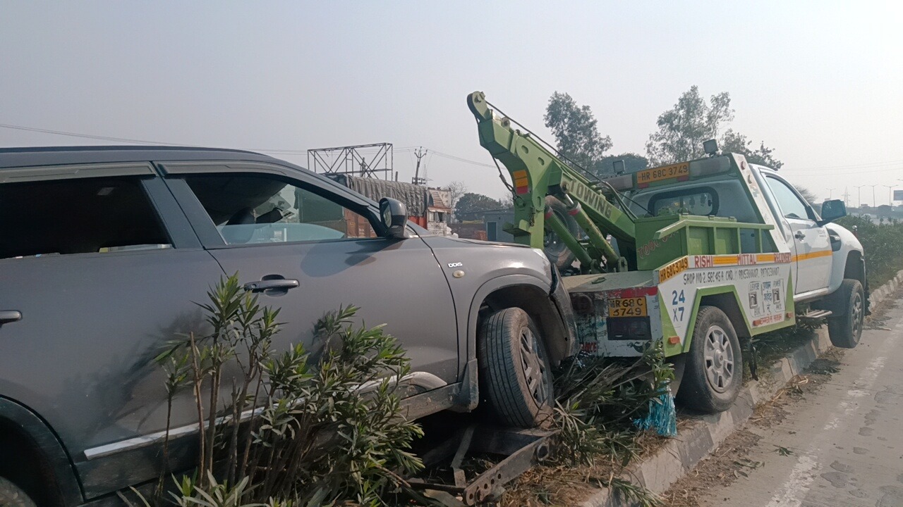 ਟੋ ਕੀਤੀ ਕਾਰ ਸਮੇਤ ਵੈਨ ਡਿਵਾਈਡਰ ‘ਤੇ ਚੜੀ; ਦੋਵਾਂ ਵਾਹਨਾਂ ਦਾ ਹੋਇਆ ਮਾਲੀ ਨੁਕਸਾਨ